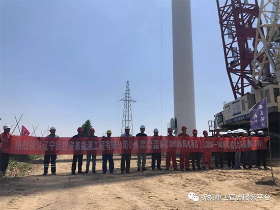 遼寧撫挖安基能源工程有限公司在北京航天·貴州電建 南宮300MW風(fēng)電場項目施工中,于2019年7月3日在河北省邢臺市南宮市完成首臺單機容量3.0MW、輪轂中心高度104米的風(fēng)機安裝,這既是我公司首臺高度更高 、重量更大 的3.0MW-140米風(fēng)機安裝,也是目前為止風(fēng)機廠家-金風(fēng)科技的 3.0MW-140米柔塔風(fēng)機批量吊裝施工的開始,為遼寧撫挖安基能源工程有限公司在風(fēng)電施工領(lǐng)域填寫輝煌的一筆。